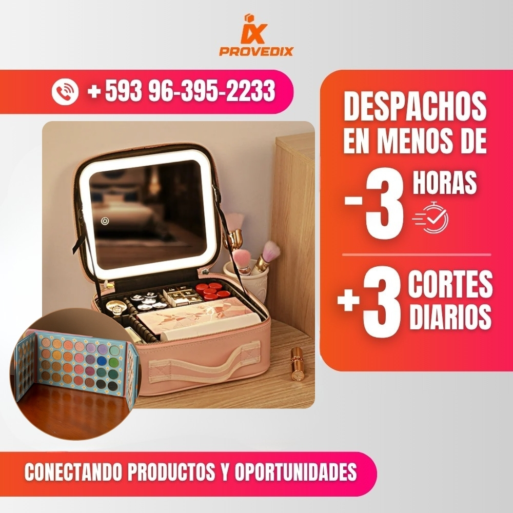 COSMETIQUERA CON ESPEJO LED Y MAQUILLAJE